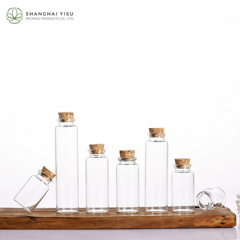 Mini tubo de vidrio con tapón de corcho para joyería y embalaje de regalo pequeño